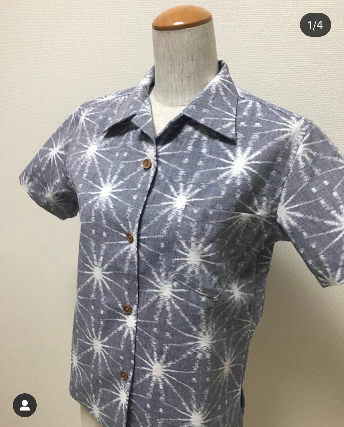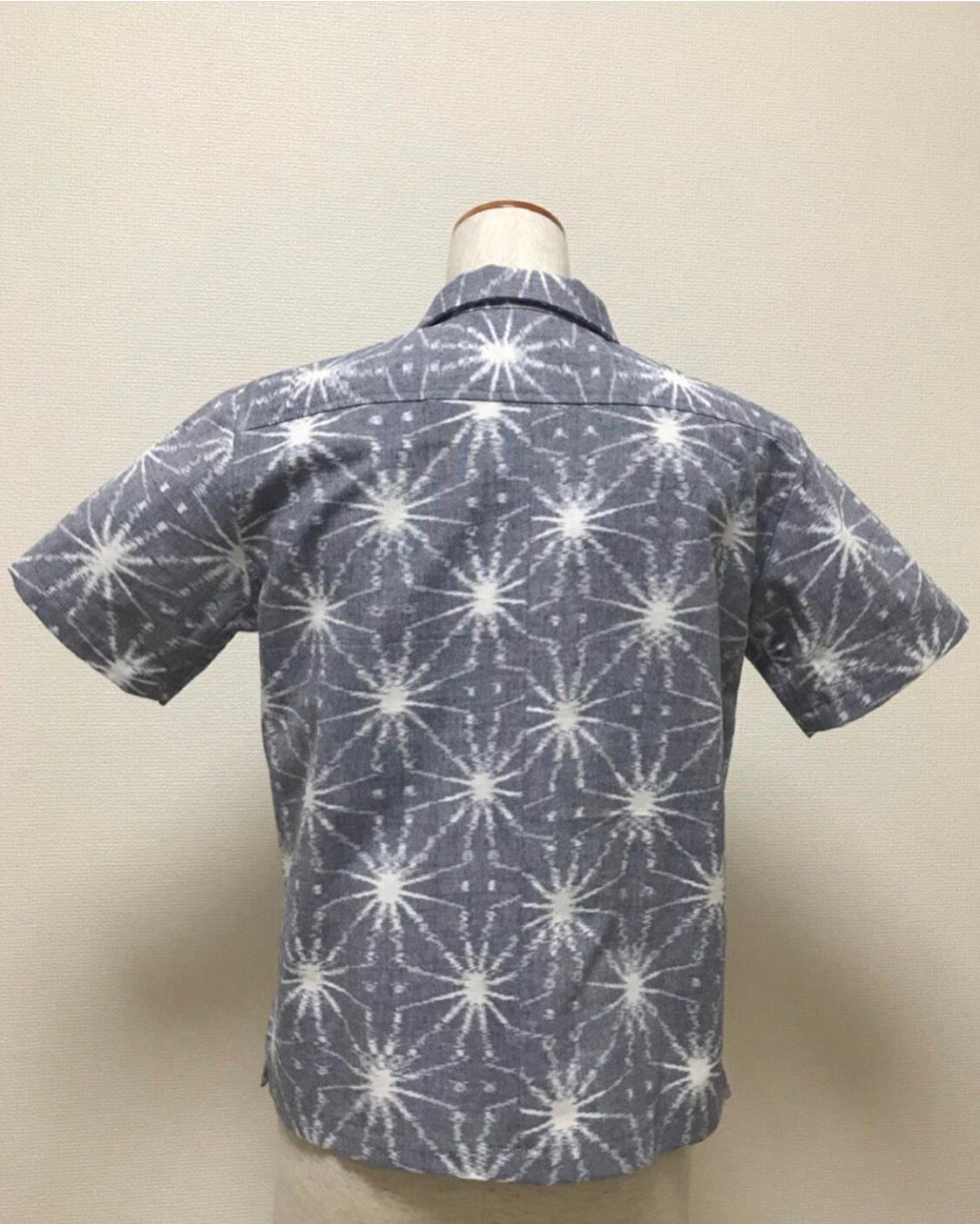 Lady's久留米絣半袖開襟シャツ【花火柄】・Sサイズ