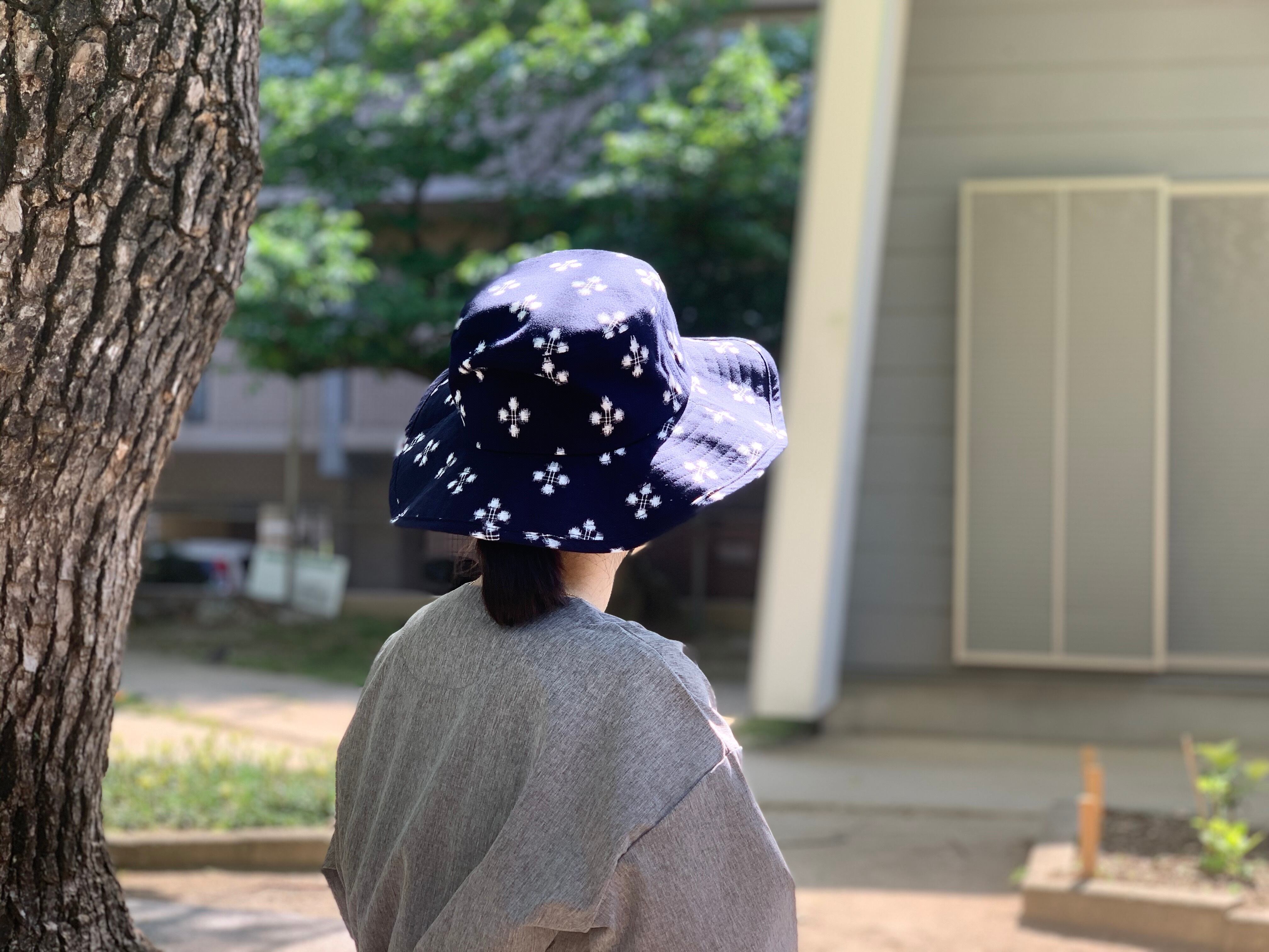 伝統工芸品『久留米絣』を贅沢に使用し、アウトドアハットのような