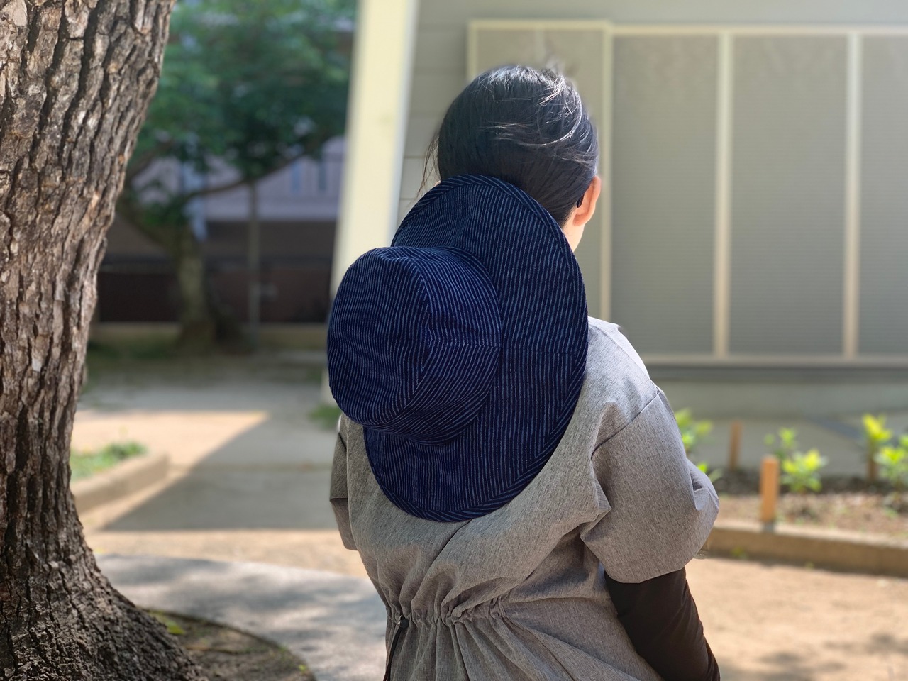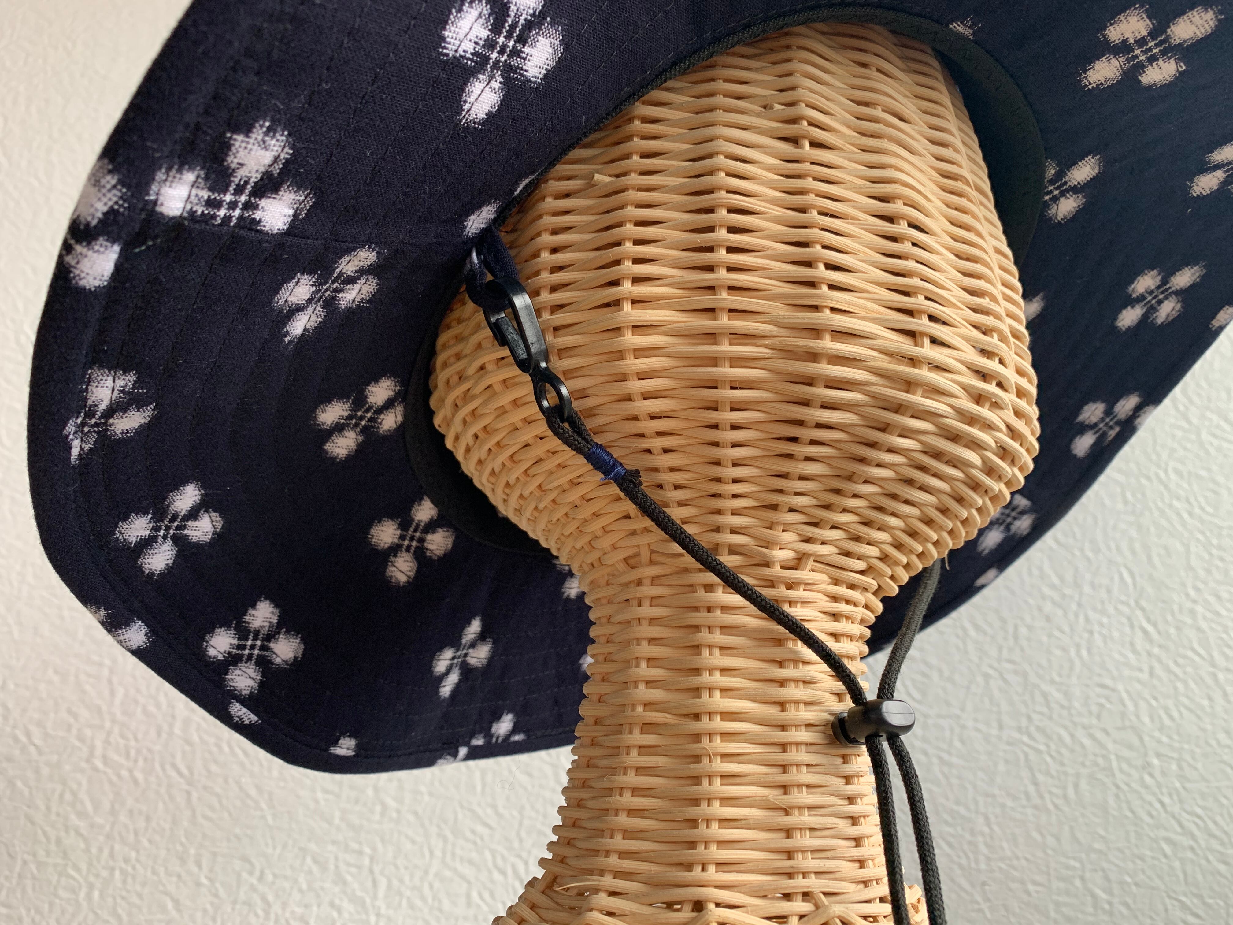 伝統工芸品『久留米絣』を贅沢に使用し、アウトドアハットのような
