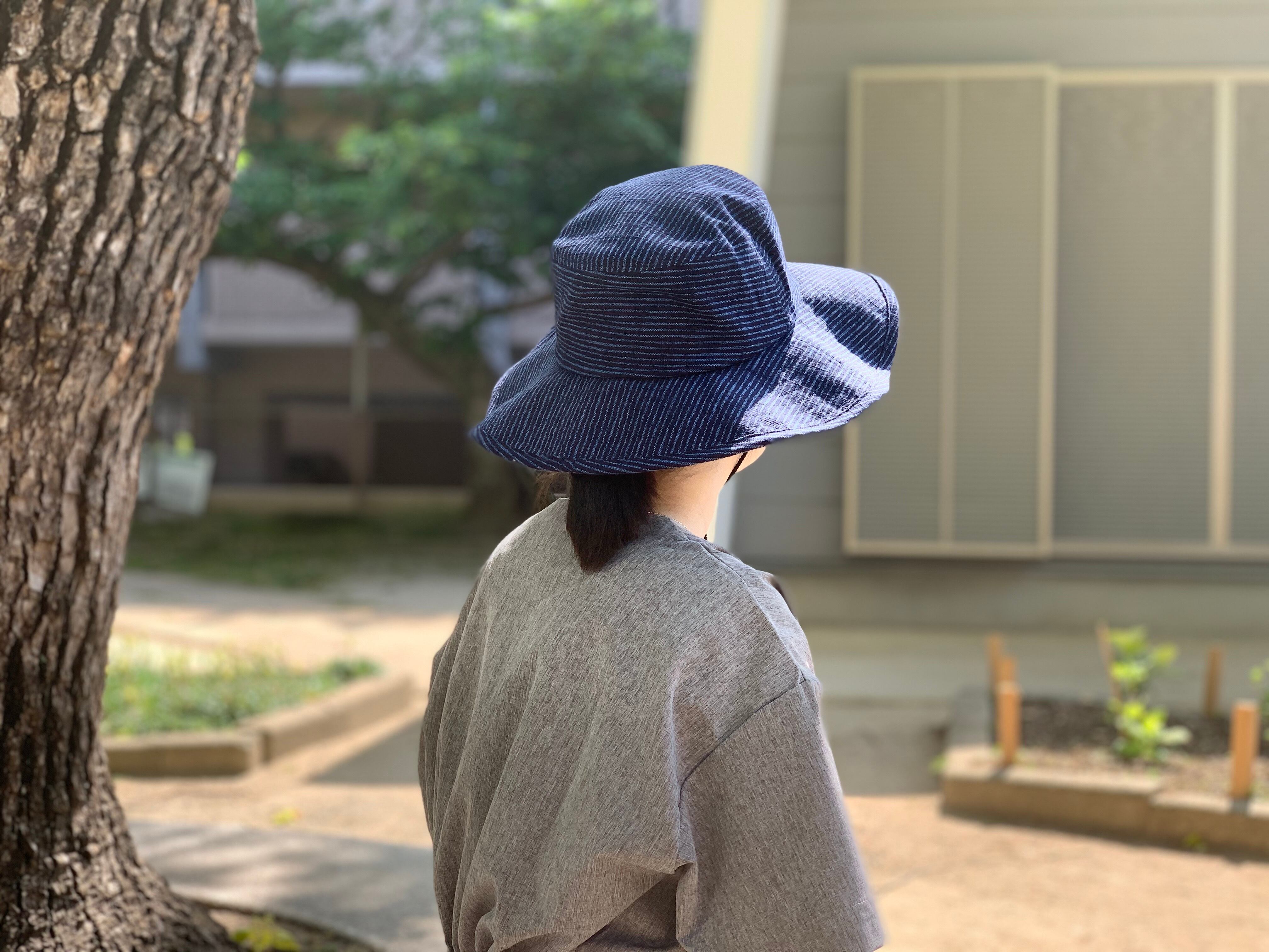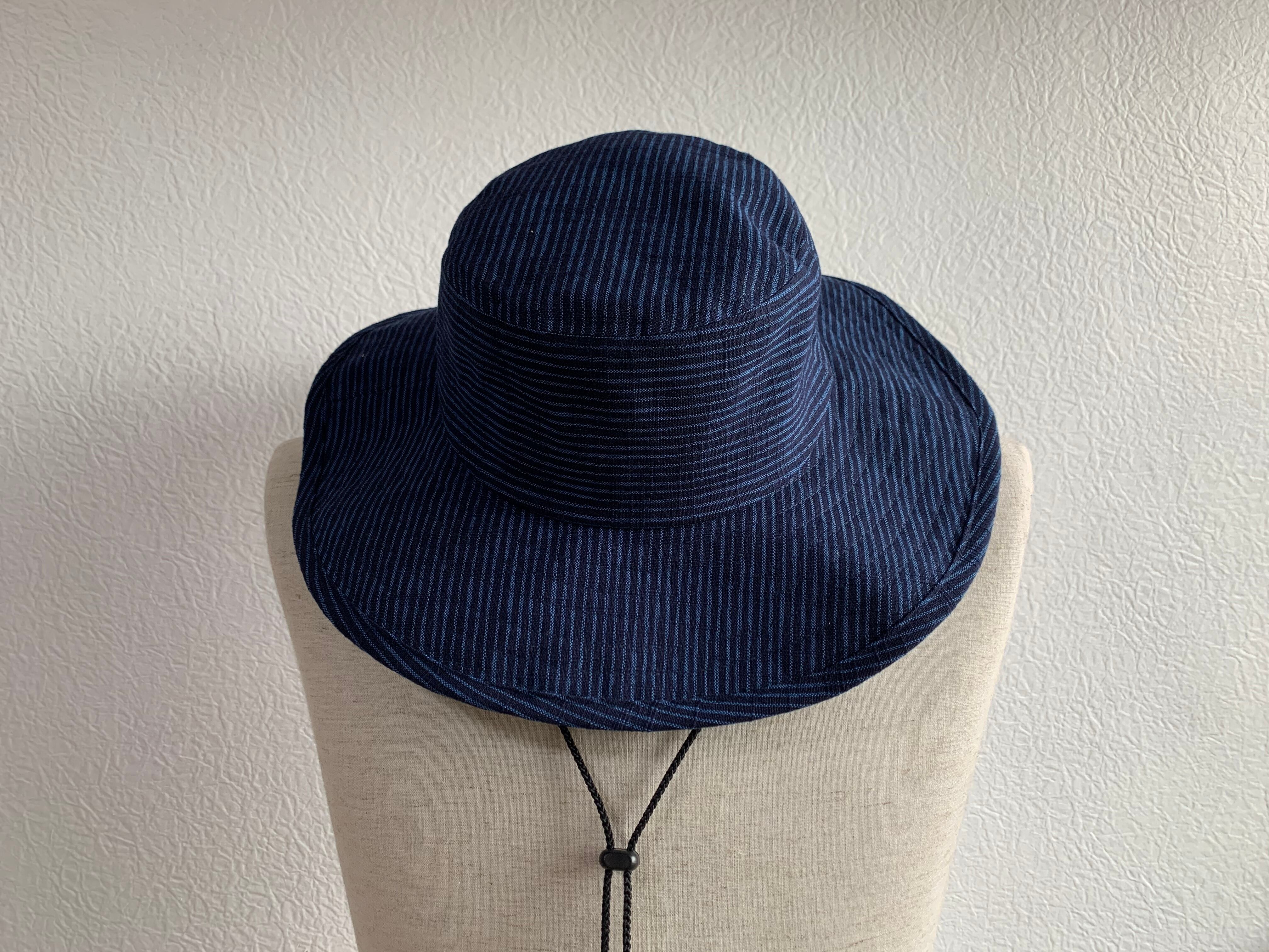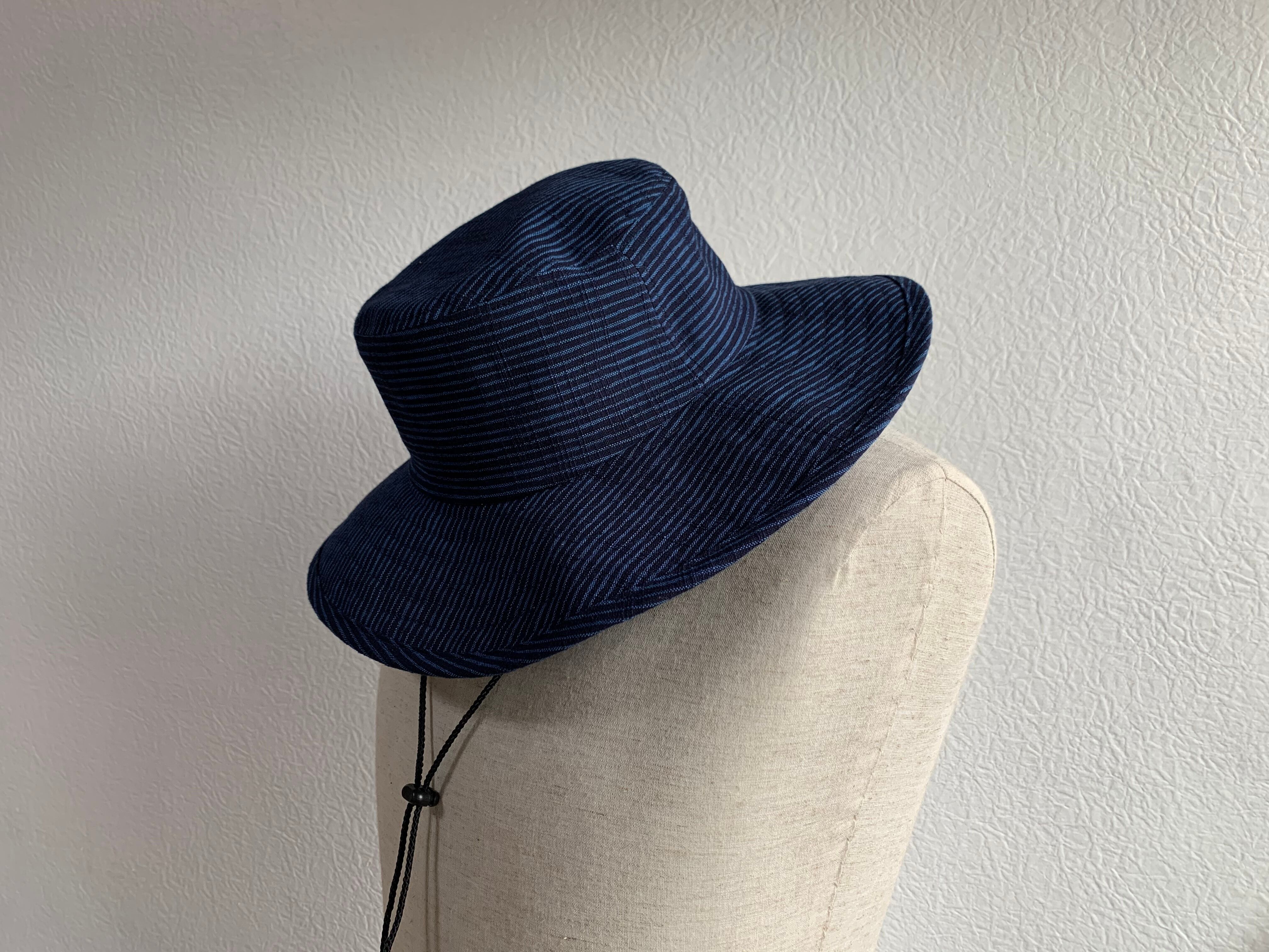 久留米絣ハット 『縁〜en〜』ストライプ柄(ネイビー×ブルー)